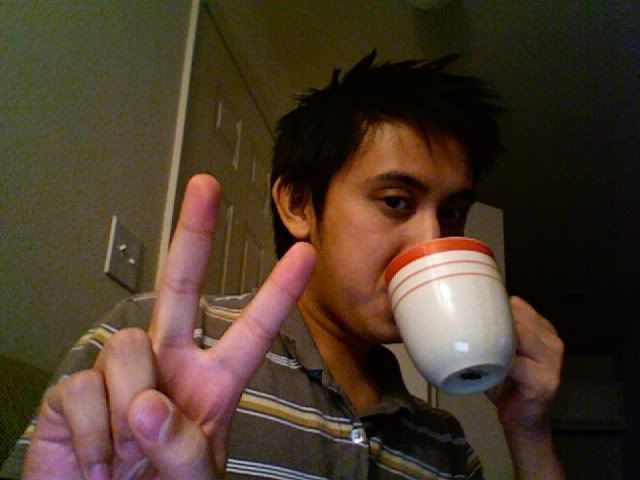 Note the cheesy peace sign and that I'm drinking coffee. I was also studying/watching the election. Good times.